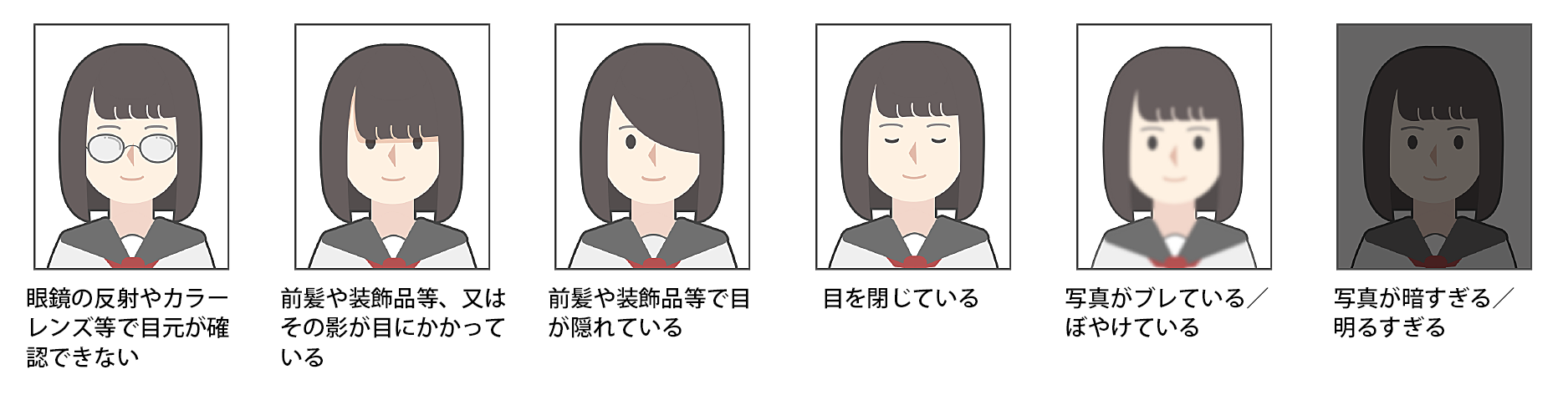 電子データの提供を行っている写真店で次の規定を満たした写真の取得を推奨しますが、規定を満たせばデジタルカメラ・スマートフォン等で撮影した写真も可とします。