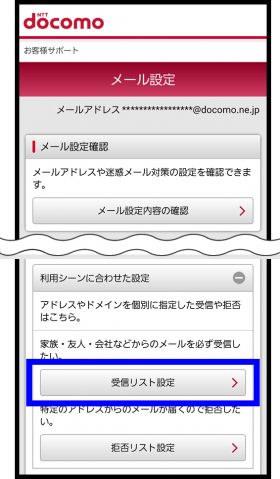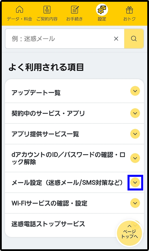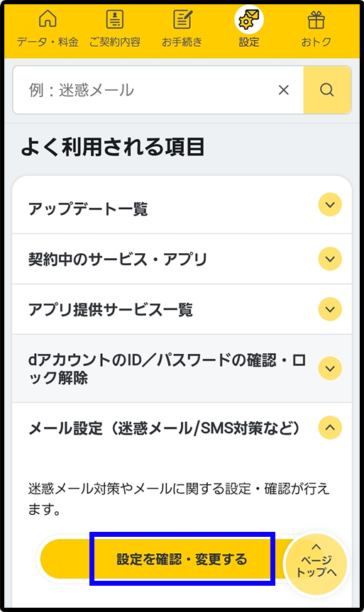 「メール設定(迷惑メール/SMS対策など)」を押す