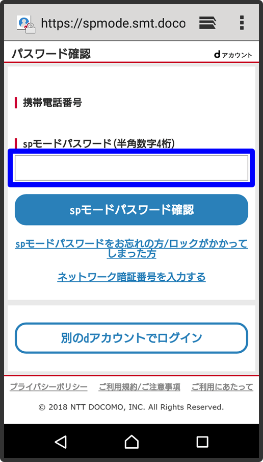 - 暗証番号(spモードパスワード)を入力して「決定」を押す