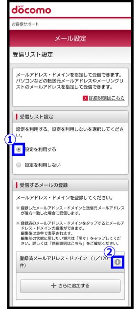"受信リスト設定"の欄にある「+」を押し、内容を確認。最後に「設定を確定する」を押す