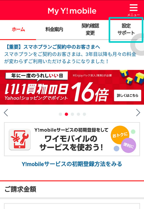 「My Y!mobile」を開く