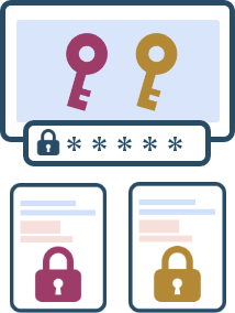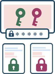 調査書データを独自手法で暗号化し、インターネットに接続するPC環境および通信経路での情報漏洩を防ぎます。またサーバ上で保管する際には、学校毎に異なる暗号鍵で暗号化し、さらにシステム内に保存されないパスフレーズを用いてこの暗号鍵自体を暗号化します。このため、パスフレーズを持つ当事者以外には誰も復号できないという高度なセキュリティを確保しています。