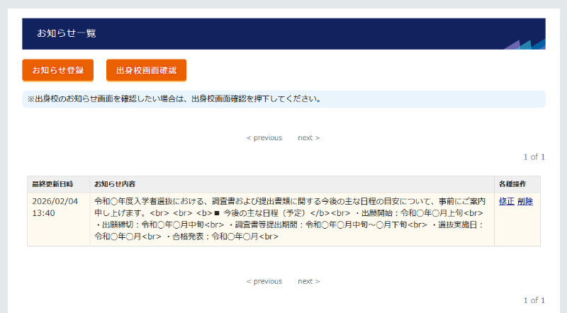 さらに、高校から全中学校への一斉案内や、特定の中学校への個別通知が行えるので、高校主導で柔軟な入試運営が実現できます。